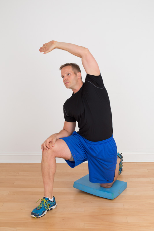 Half Kneeling High Reach – stretches one entire side of the body and may improve your ability to genuflect with more strength and less pain.
