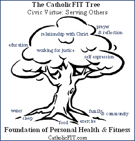 Civic Virtue: It is tough enough wrapping our own heads and hearts around this idea of living a life of purpose. It becomes more difficult then to explain this to our children and students. Therefore, in the CatholicFIT Program, we simply state that our purpose is service. We call it our Civic Virtue. A part of being CatholicFIT means understanding this: service is love made visible. Love is God made visible. Therefore staying fit in order to serve others is to find a connection between our daily behaviors and God’s purpose and love for us.